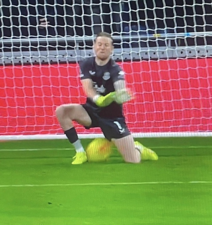 英超第13轮,埃弗顿主场1-4惨败纽卡斯尔联。比赛第25分钟,皮克福德扑救诞妄导致丢球。