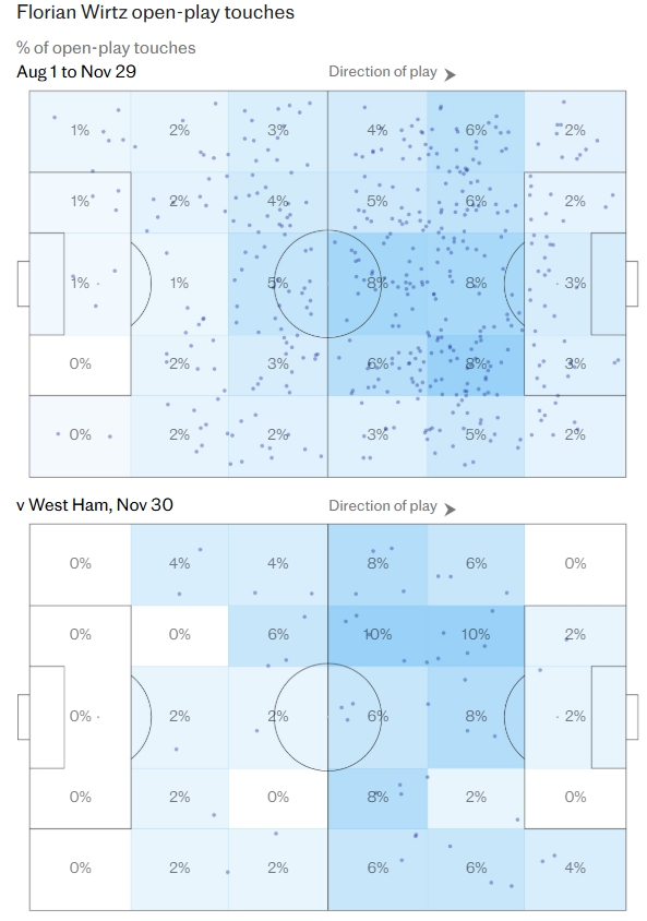 利物浦在2-0西汉姆的比赛中,迎来了从低迷到“维尔茨式”新生的鼎新,这位以1.15亿英镑转会费加盟球队的中场引导官打出了他在英超最全面的阐扬,印证了斯洛特围绕这位德国新星建队,从而补救这个赛季并稳住帅位的构念念。