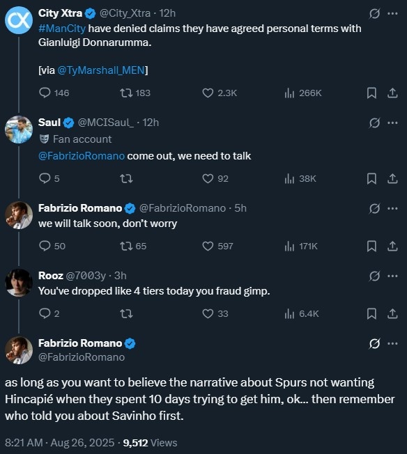 8月26日讯 名记罗马诺今天在推特发文,回复球迷质疑。