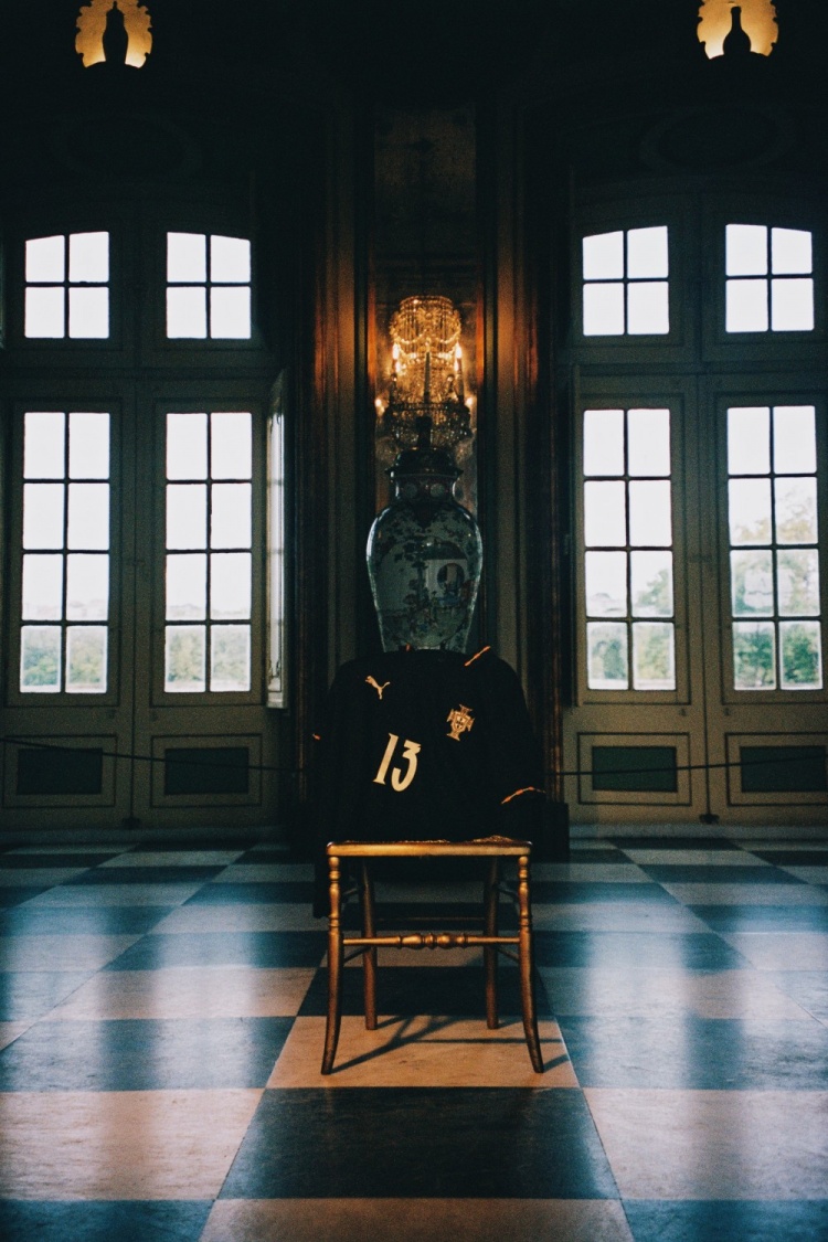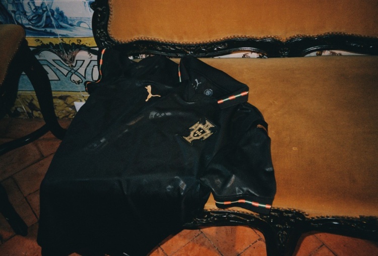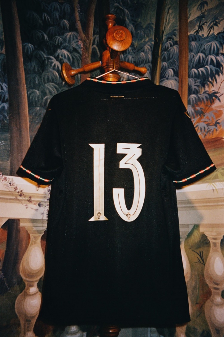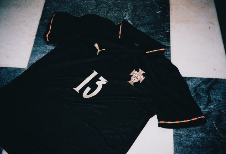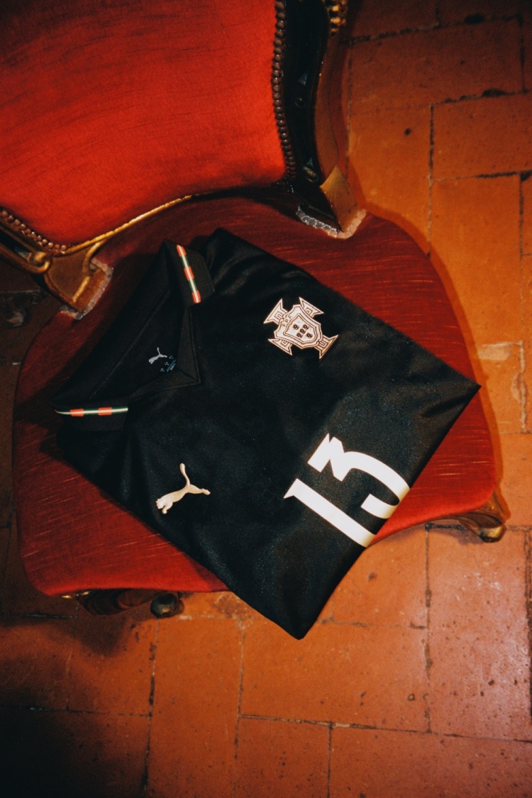 这套球衣由彪马缱绻分娩,球衣主体为玄色,衣袖和衣领处有葡萄牙国旗配色。