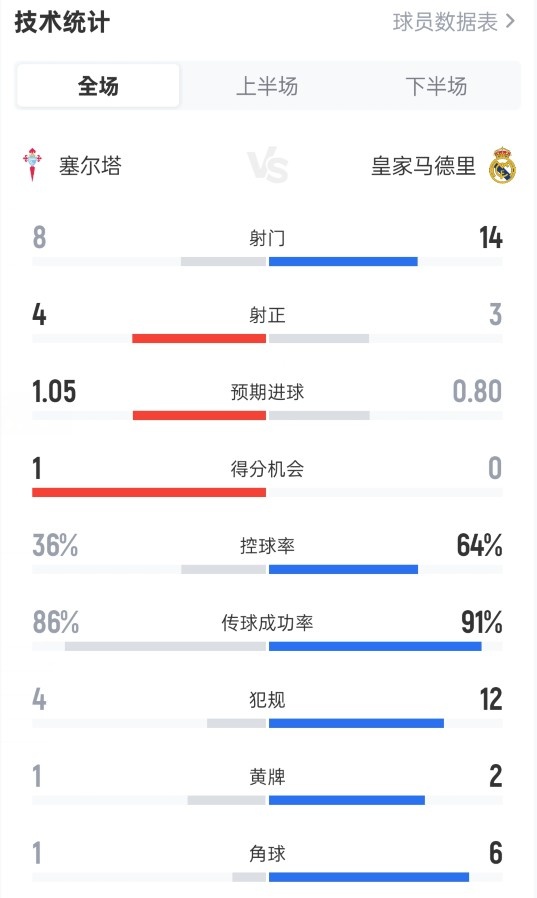 整场比赛数据如下: