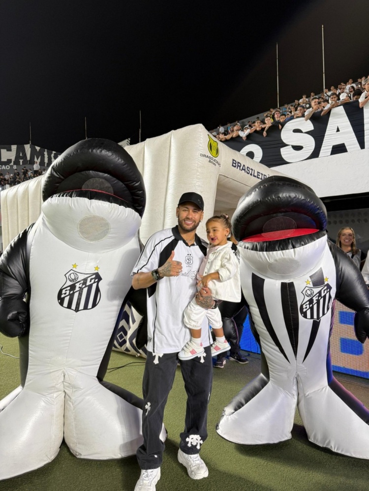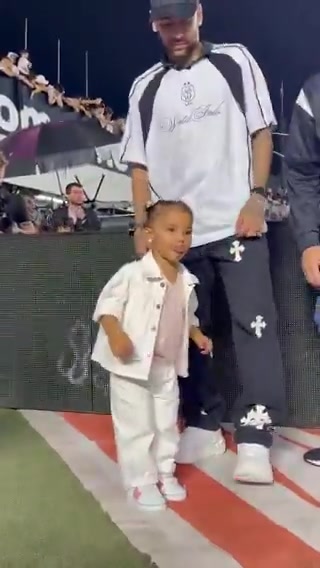 桑托斯俱乐部社媒晒出视频和相片,因伤缺席的内马尔带着儿子玛维来到现场,为桑托斯恭维。