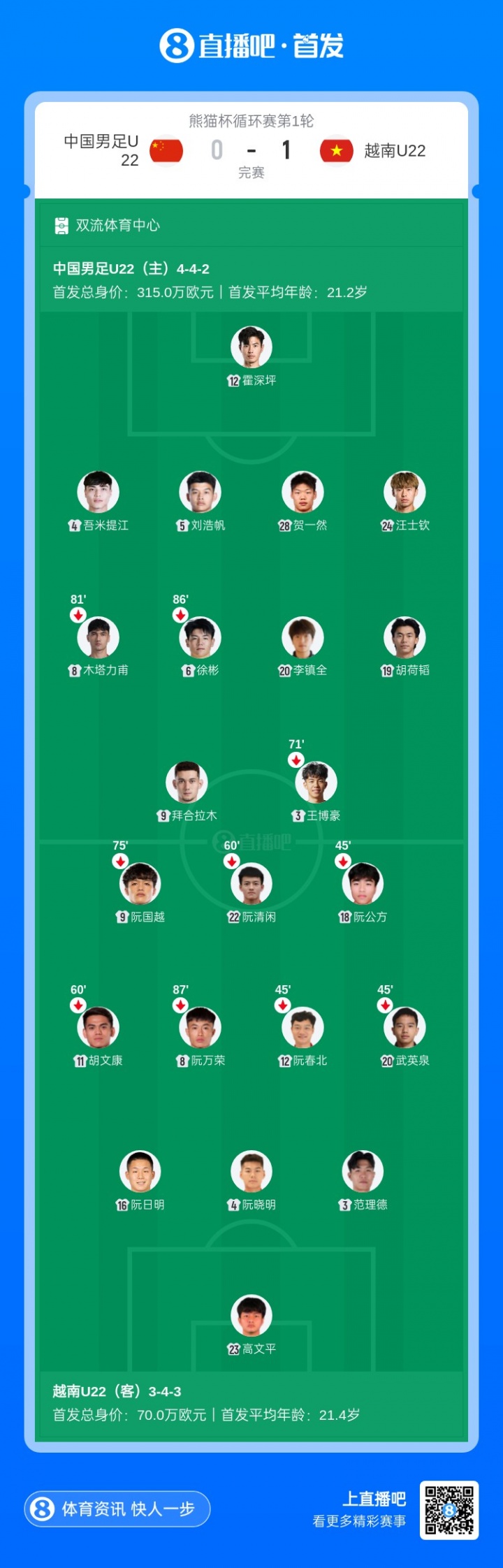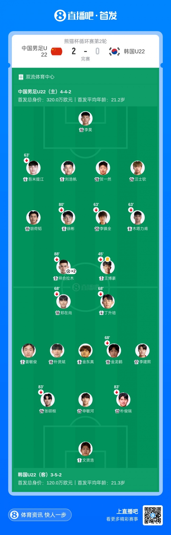11月18日讯 熊猫杯第3轮,中国U22男足vs乌兹别克斯坦U22男足,赛前首发公布,较上场打败韩国U22,U22国足首发更换9东说念主,仅刘浩帆、贺一然不竭先发。