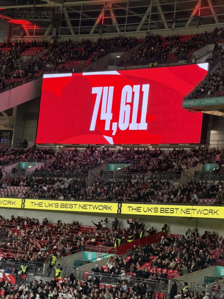 本场比赛热度火爆,比赛截至前,现场公布的到场不雅世东说念主数达到74611东说念主,堪比一场隆远大赛对决。