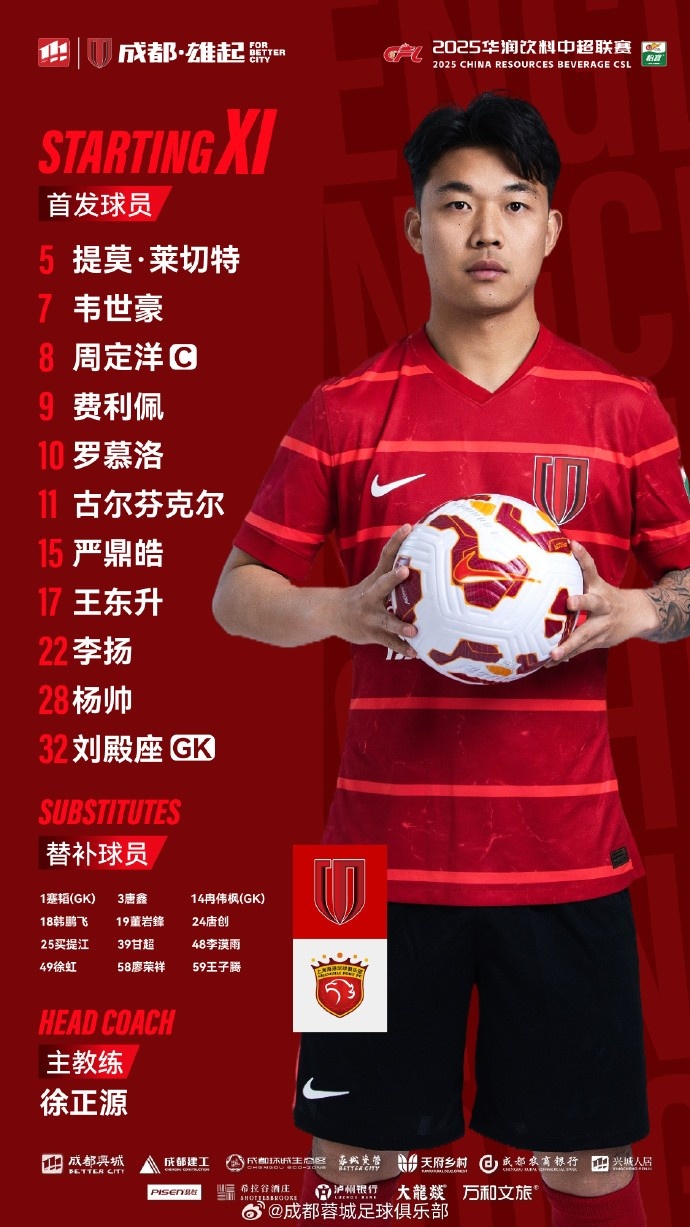 成王人蓉城vs上海海港比赛首发名单出炉!成王人,雄起!