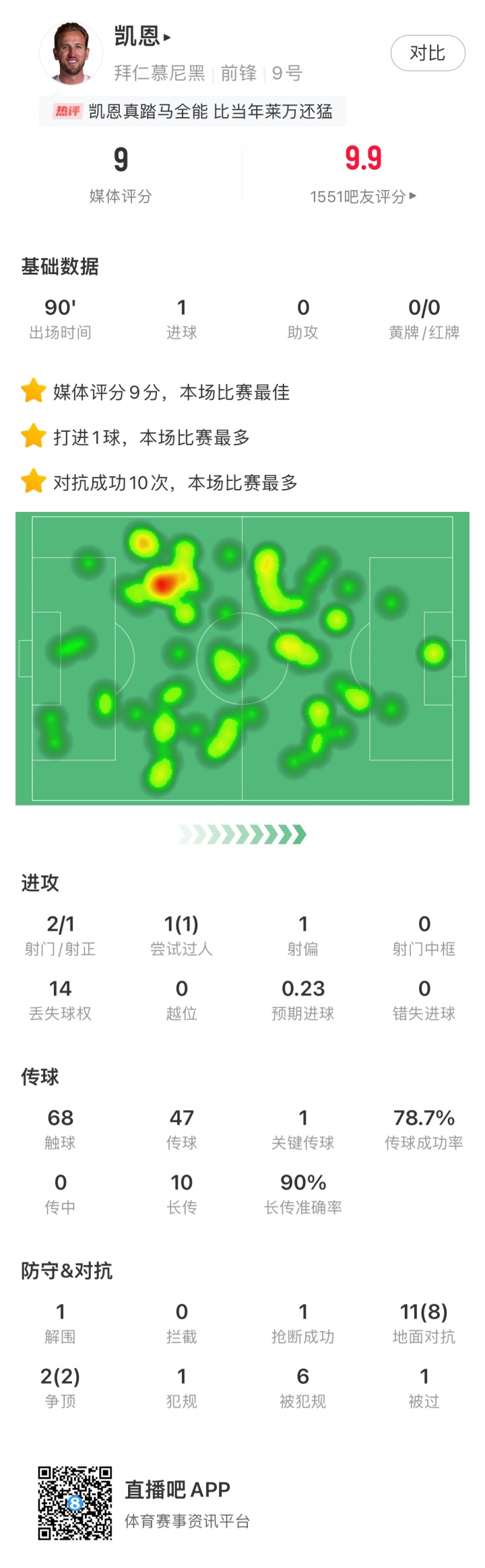 德甲国度德比,凯恩的进球匡助拜仁2-1打败多特蒙德。本场凯恩不仅打入了首开纪录的头球,在串联打算、抗击、戒备方面也燃尽所能。