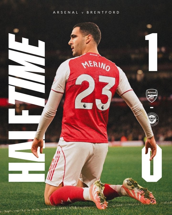12月4日讯 阿森纳在本轮英超对阵布伦特福德,梅里诺为球队首开记载,上半场比分1-0。